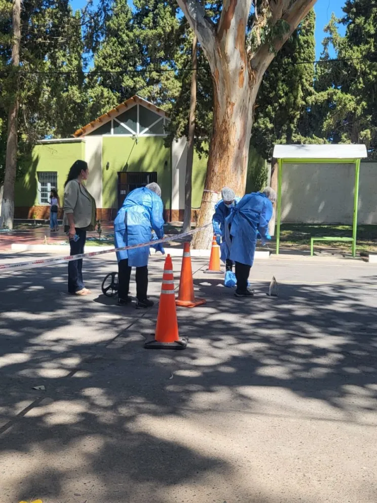 El atroz suceso ocurrió en la puerta del cementerio del departamento. La UFI llevó a cabo un registro fotográfico del lugar del femicidio, situado en la calle Olivera entre Puntal del Monte y el callejón Prolongación Guerra.